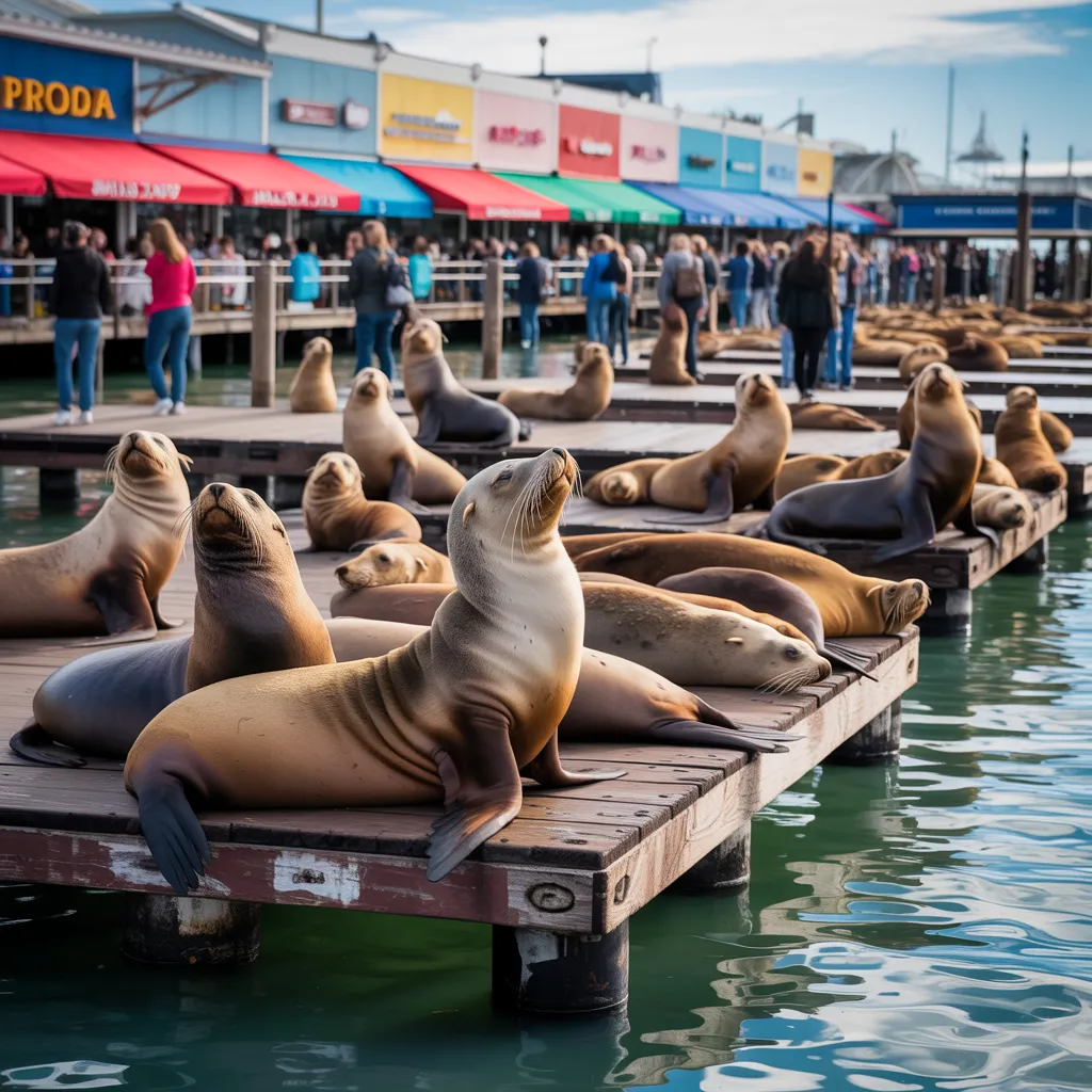 A lively spectacle unfolds at Pier 39 as sea lions bask in the sun, captivating visitors with their playful behavior. This celebrated landmark has become a trademark of San Francisco, drawing crowds enthusiastic to witness the distinctive behavior of these marine mammals. The sea lions, often observed resting on the floating docks, engage in playful sparring, vocalizations, and sunbathing, creating a charming environment. Their presence not only mesmerizes travelers but also reflects the natural beauty of the area. Environmental programs have helped protect these animals, ensuring they remain a cornerstone of the San Francisco experience. For visitors ranging from families to nature enthusiasts and photographers, the sea lions at Pier 39 offer an unforgettable window into the vibrant marine life of the California coast.